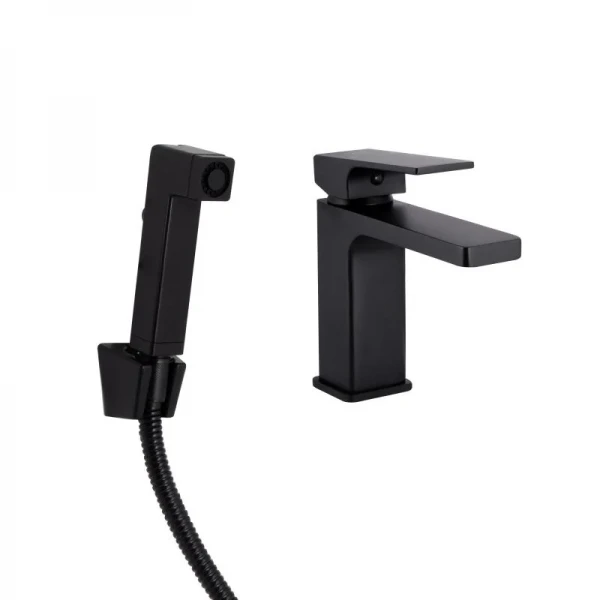 Смеситель для раковины Qtap Gemini (с гигиеническим душем) QTGEM272BLM45690 Black Matt: Элегантность и функциональность в каждой детали