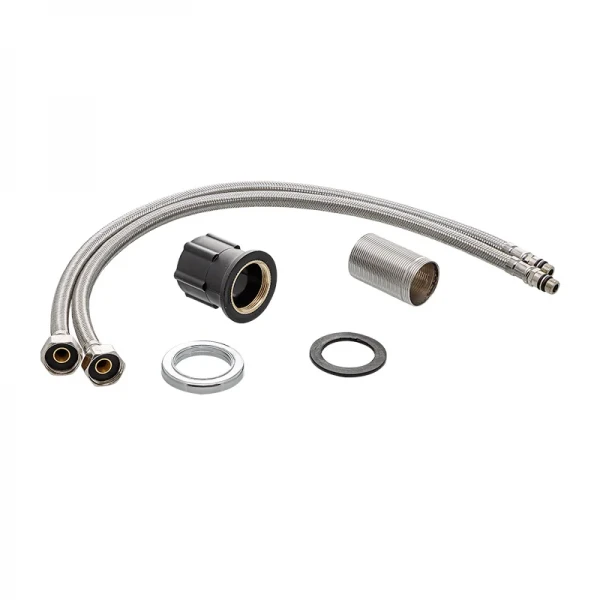 - Подсоедините гибкие подводки к водопроводным трубам.