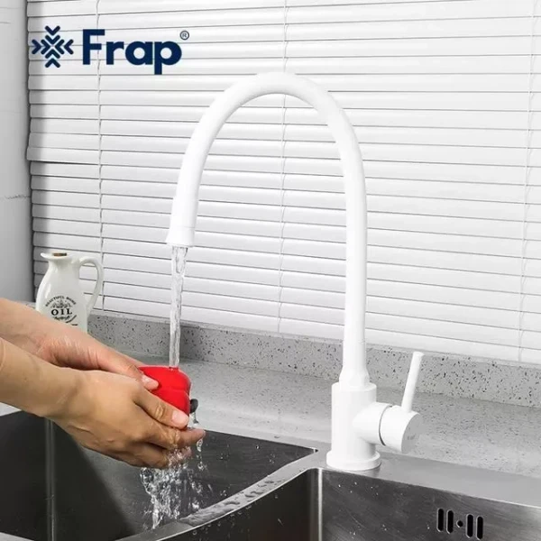 Смеситель для кухни FRAP F40994-8 с гибким изливом: Белый акцент функциональности