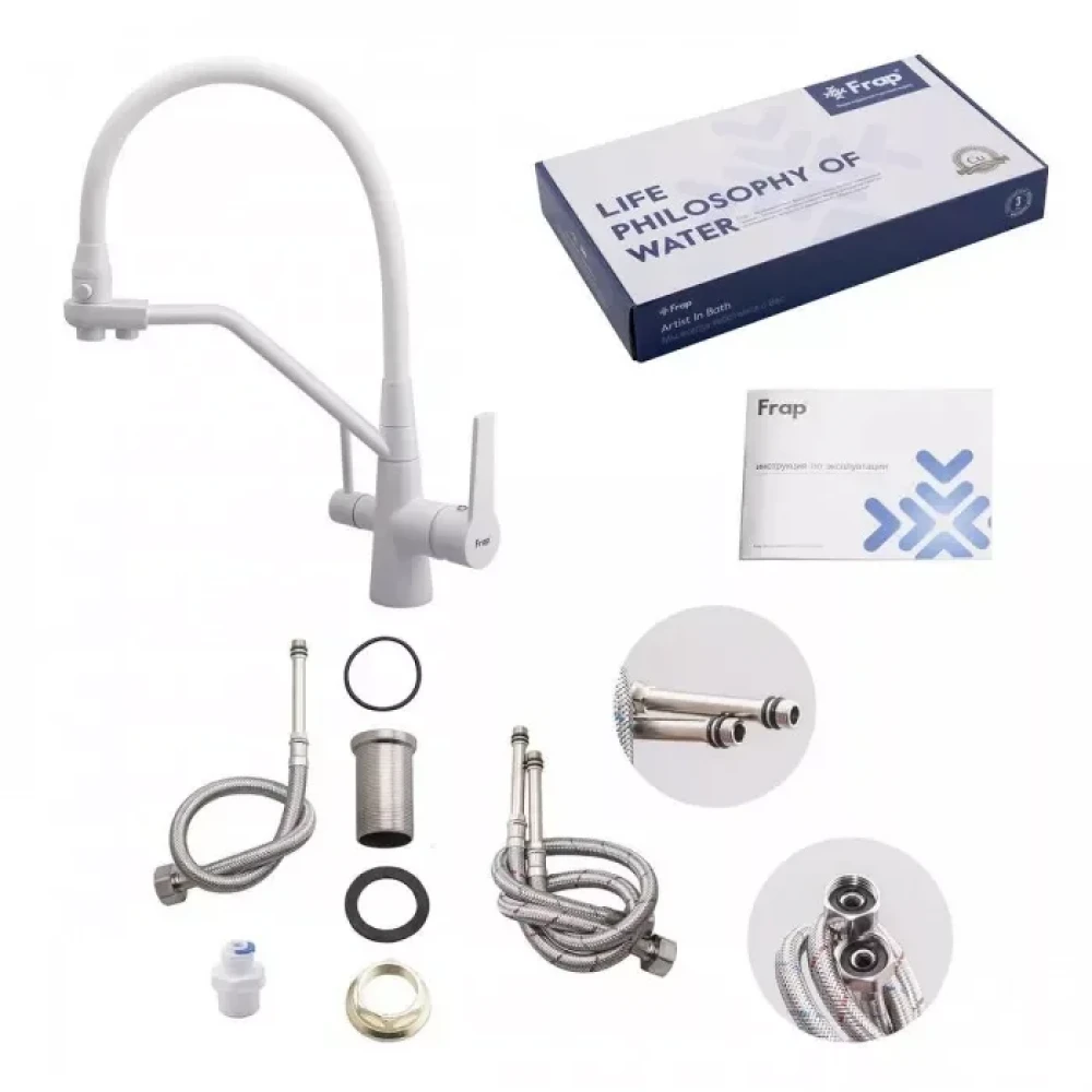 Закажите Смеситель для кухни FRAP F4374-8 для двух видов воды белый сейчас и наслаждайтесь комфортом!