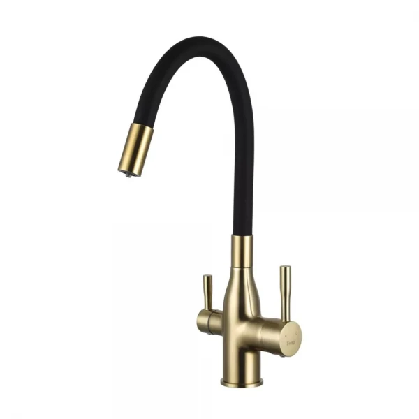Смеситель FRAP F4396-3 изготовлен из высококачественной латуни, что гарантирует его долговечность и устойчивость к коррозии. Гибкий излив позволяет легко направлять струю воды в нужном направлении, что особенно удобно при мытье больших кастрюль, сковородок и овощей. Отдельный кран для фильтрованной воды обеспечивает быстрый и легкий доступ к чистой питьевой воде, экономя место на столешнице и избавляя от необходимости устанавливать дополнительный кран. Этот кухонный смеситель станет отличным выбором для тех, кто ценит качество, комфорт и заботится о своем здоровье.