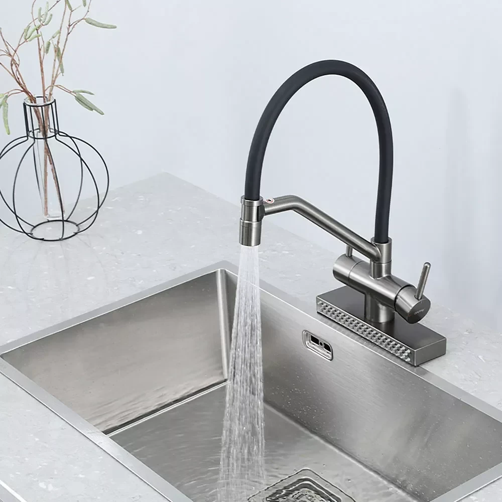 Смеситель GAPPO G4098-9 идеально подходит для установки на кухонные мойки любого типа. Благодаря высокому изливу и функции водопада, он обеспечивает максимальный комфорт при мытье посуды, овощей и фруктов. Этот смеситель станет отличным выбором как для современных кухонь, так и для кухонь в классическом стиле, добавляя им нотку элегантности и функциональности.