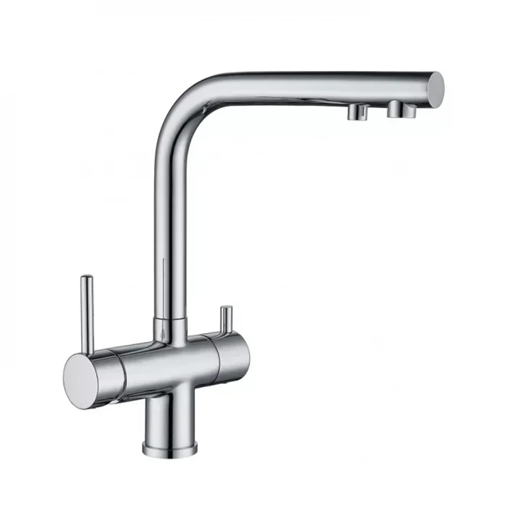 Этот смеситель для кухни под фильтр изготовлен из высококачественной хромированной стали, что гарантирует его долговечность и устойчивость к коррозии. Элегантный хромированный дизайн прекрасно впишется в любой современный кухонный интерьер, добавляя ему стиля и функциональности. Два раздельных излива предотвращают смешивание обычной и фильтрованной воды, обеспечивая максимальную гигиеничность. Высокое качество материалов и сборки гарантируют долгий срок службы и надежную работу смесителя.