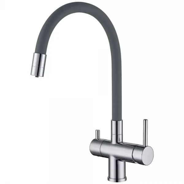 Смеситель для кухни GAPPO G4398-30 с гибким изливом в элегантном серо-хромовом исполнении – это идеальное сочетание современного дизайна и практичности. Он не только станет украшением вашей кухни, но и значительно упростит выполнение повседневных задач. Благодаря гибкому изливу, вы сможете легко достать до любого уголка мойки и без труда справиться с мытьем крупногабаритной посуды.