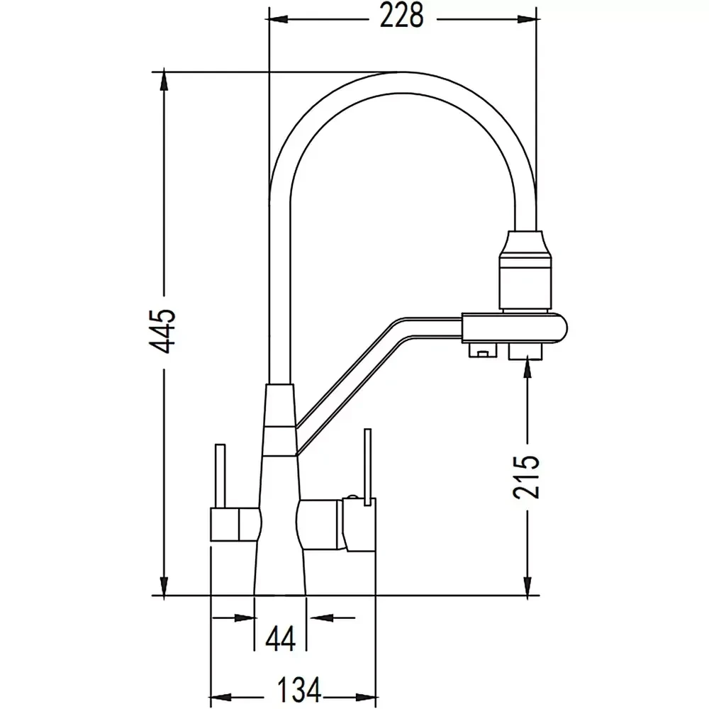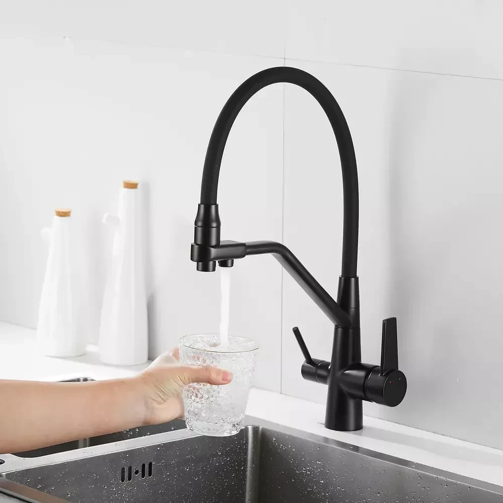 - Предназначен для подачи двух типов воды, что повышает удобство использования.