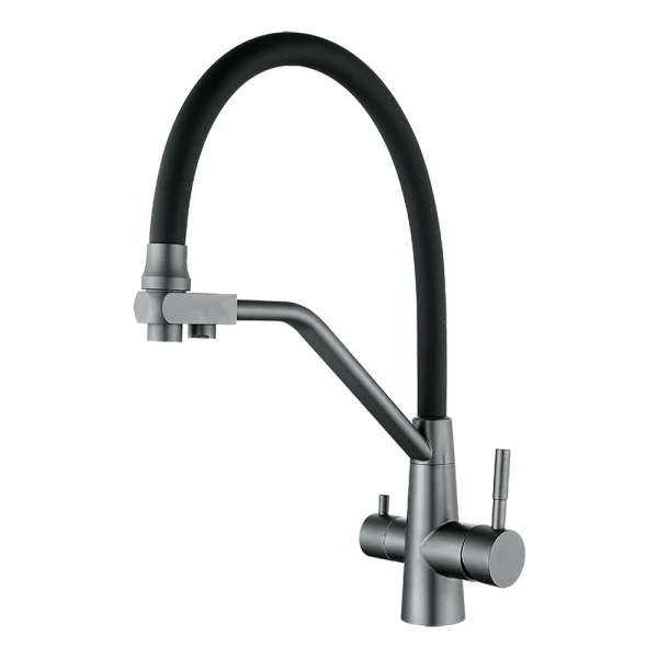 WEZER INX4A-08 – это однорычажный смеситель, изготовленный из высококачественной нержавеющей стали, что гарантирует его долговечность и устойчивость к коррозии. Гибкий силиконовый излив позволяет легко направлять струю воды в нужное место, делая мытье посуды и продуктов более удобным. Цвет "гангрей" (серый) придаст вашей кухне современный и стильный вид. Диаметр подключения составляет 35 мм, что соответствует большинству стандартных кухонных моек. Главной особенностью является наличие отдельного канала для подключения к системе обратного осмоса, что позволяет получать чистую питьевую воду прямо из смесителя. Бренд WEZER змішувач известен своим качеством и надежностью сантехнической продукции.