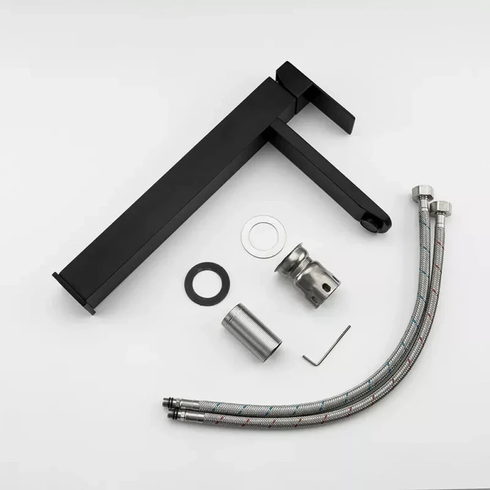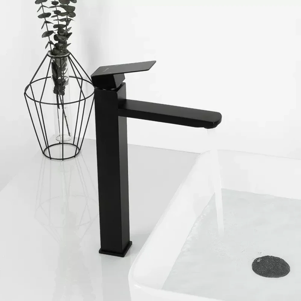 Смеситель FRAP F10802-62 изготовлен из высококачественной латуни, что гарантирует его долговечность и устойчивость к коррозии. Черное матовое покрытие придает ему элегантный и современный вид, идеально сочетаясь с различными стилями интерьера ванной комнаты. Высокий излив обеспечивает комфортное использование, позволяя легко мыть руки и умываться. Керамический картридж обеспечивает плавное и точное регулирование температуры и напора воды.