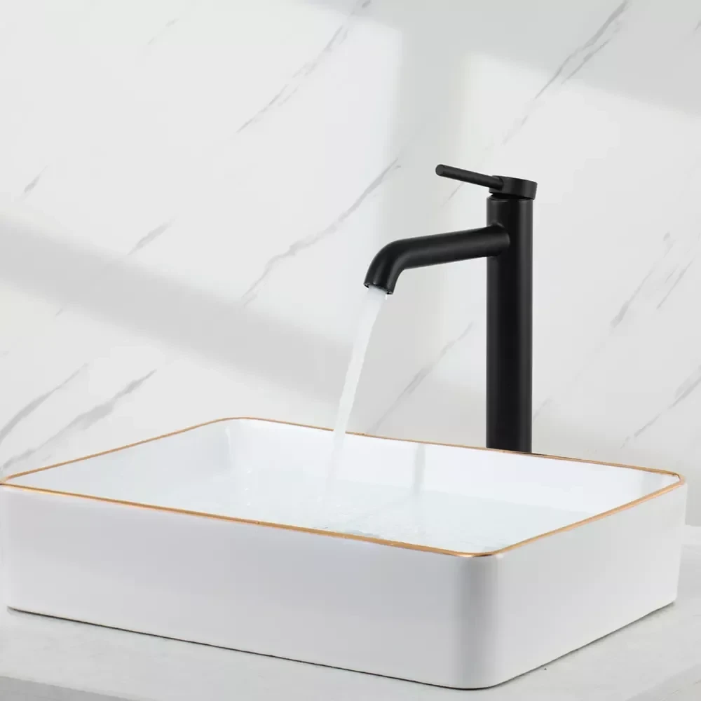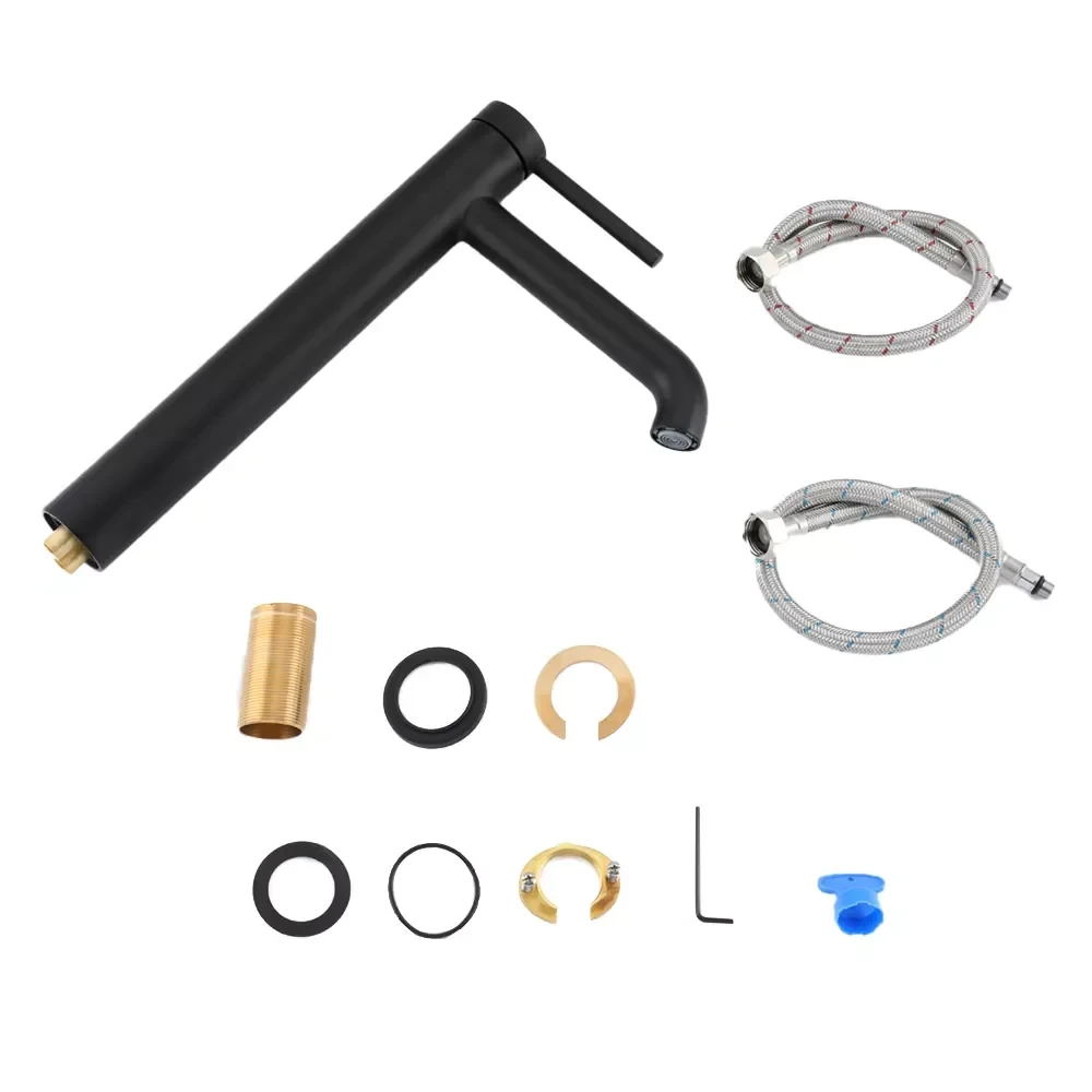 Этот черный смеситель идеально подходит для установки на раковины в ванных комнатах, туалетных комнатах, а также в гостевых санузлах. Высокий излив обеспечивает удобство использования для людей любого роста и позволяет комфортно выполнять ежедневные гигиенические процедуры. Благодаря своему стильному дизайну и практичности, смеситель станет прекрасным дополнением к интерьеру вашей ванной комнаты.