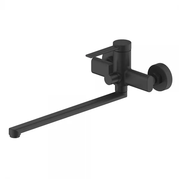 - Длинный плоский излив для комфортного наполнения ванны.