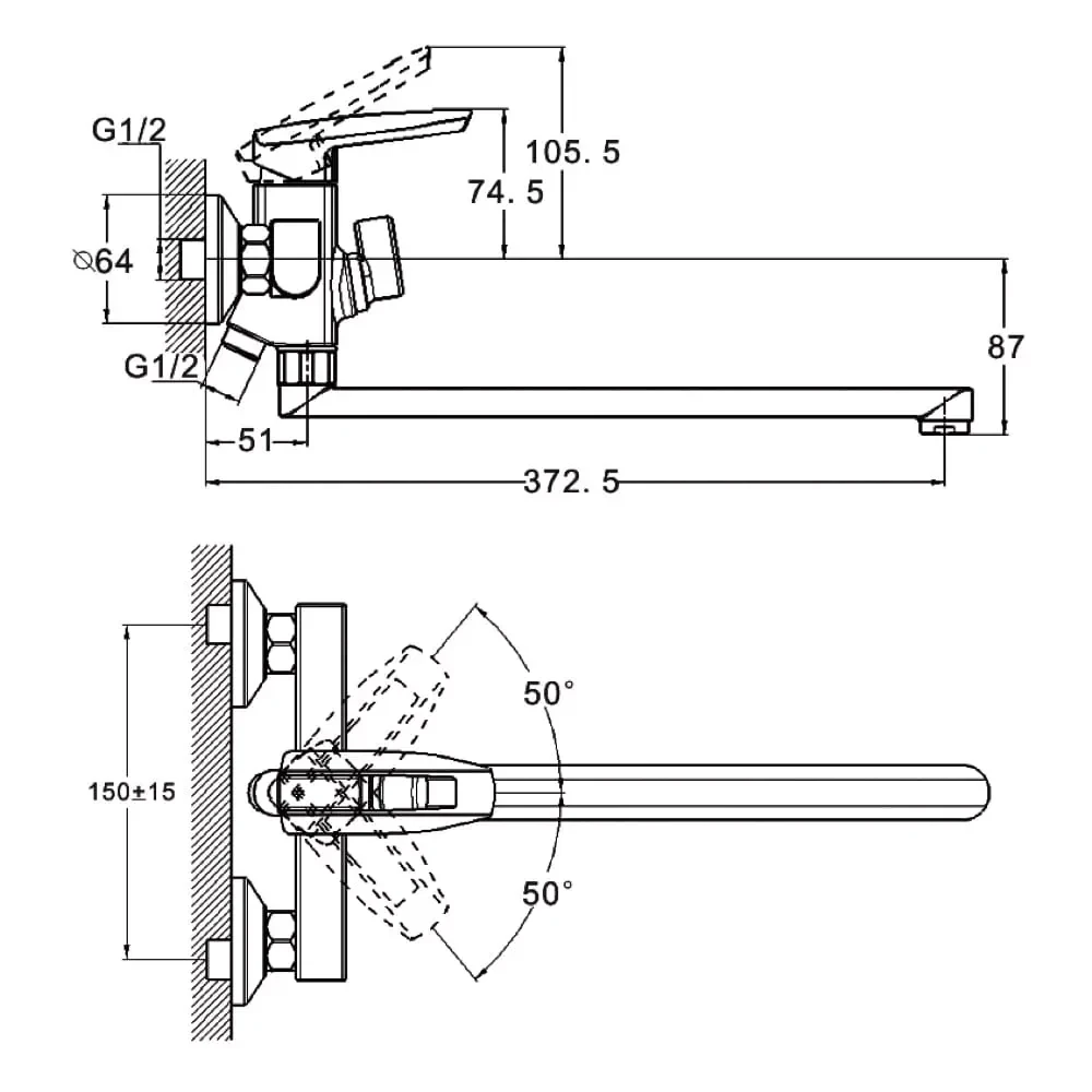 Этот смеситель идеально подходит для установки на борт ванны или на стену, обеспечивая удобный доступ к воде для ежедневных гигиенических процедур, наполнения ванны и использования душа (при наличии душевого комплекта). Он прекрасно впишется в любой интерьер ванной комнаты, от классического до современного.