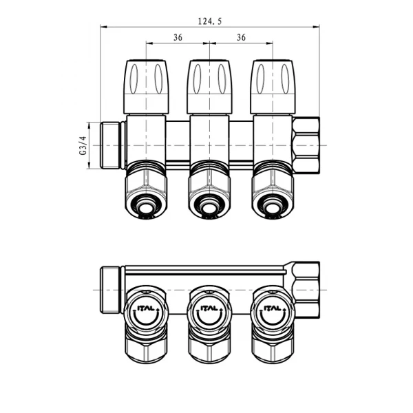 Замовте Колектор для теплої підлоги ITAL 3 виходи нікельований 3/4"x16*2 з регулювальними вентилями і перехідником під євроконус зараз та насолоджуйтесь комфортом!