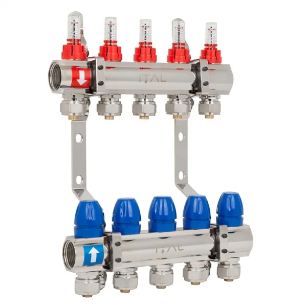 Колектор розподільчий ITAL вирізняється високою якістю матеріалів та точністю регулювання. Він забезпечує надійну та ефективну роботу системи теплої підлоги, дозволяючи вам створити комфортний мікроклімат у вашому домі. На відміну від аналогів, колектор ITAL має вбудовані витратоміри, що значно спрощує налаштування та забезпечує більш точний контроль температури.