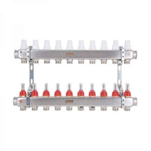 Коллектор Icma № К073 с расходомерами (нерж.) 1" х 3/4" на 10 выходов: точный контроль и долговечность вашей системы теплого пола