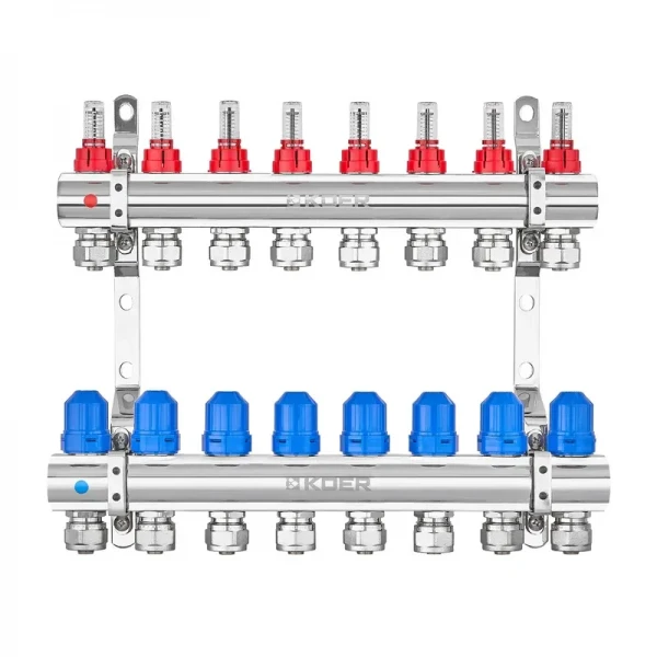 Коллекторный блок с расходомерами и евроконусами Koer KR.1210-8 - 1"x8 WAYS (KR5270): точный контроль отопления