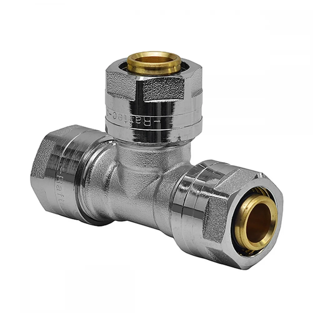 TR-202020 – це обтискний трійник, виготовлений з високоякісної латуні, призначений для створення надійних нероз'ємних з'єднань в системах трубопроводів, що використовують металополімерні труби PEX-AL-PEX, PEX-AL-PE, PE-AL-PEX та PEX-AL-PERT. Трійник Raftec 20мм TR-202020 забезпечує герметичне та довговічне з'єднання, необхідне для безперебійної роботи вашої системи водопостачання або опалення. Raftec – відомий бренд, який спеціалізується на виробництві надійної сантехніки, що відповідає високим стандартам якості. Вся продукція Raftec проходить ретельний контроль якості, що гарантує її довговічність та безпеку використання. Вибираючи Трійник Raftec 20мм TR-202020, ви обираєте якість та надійність для вашої системи. Цей фітинг є оптимальним рішенням для монтажу систем водопостачання та опалення, де потрібна висока герметичність та стійкість до тиску та температури.