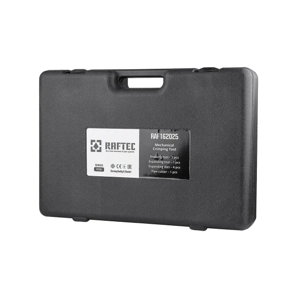 Raftec RAF 162025 – це комплект механічного прес-інструменту, розроблений для професійного та якісного монтажу трубних систем зі зшитого поліетилену PEX. Інструмент призначений для роботи з різними типами PEX труб, включаючи РЕХ-а (PEXA), PEX-b (PEXB), РЕХ-с (PEXC) та PERT (PERT). Він забезпечує надійне з'єднання фітингів, гарантуючи герметичність та довговічність вашої системи водопостачання або опалення. Бренд Raftec відомий своєю увагою до деталей та використанням високоякісних матеріалів, що робить їхній інструмент вибором професіоналів. Використання **Монтажного інструменту Raftec RAF 162025** дозволяє швидко та ефективно виконувати монтажні роботи, заощаджуючи час та зусилля.