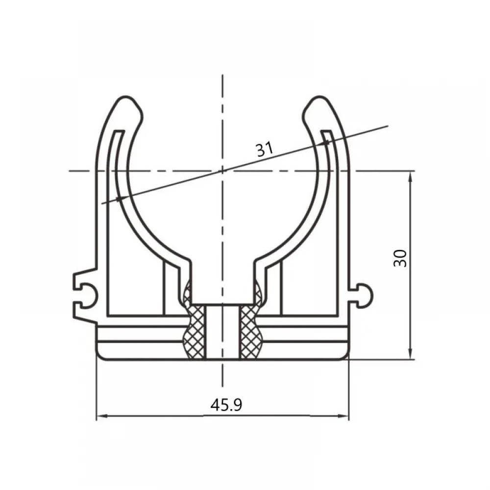 - Надійна фіксація PPR труб діаметром 32 мм.