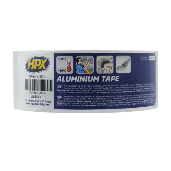 AL5050L идеально подходит для герметизации воздуховодов, систем вентиляции и кондиционирования, а также для теплоизоляции труб и оборудования. Лента алюминиевая HPX односторонняя 50мм х 50м x 0,03мм AL5050L может использоваться для отражения инфракрасного излучения, повышая энергоэффективность систем отопления и кондиционирования. Также, она применяется для ремонта и герметизации металлических конструкций, в том числе на даче или в гараже. Благодаря своей устойчивости к старению, AL5050L обеспечивает надежную герметизацию на протяжении более 15 лет как внутри, так и снаружи помещений.