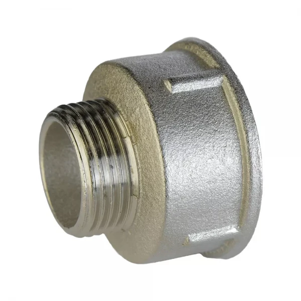 Переходник VLMZ (L-88) 1 1/2" В x 1" С никелированный – это высококачественный фитинг, предназначенный для надежного соединения труб различного диаметра в системах водоснабжения и отопления. Изготовленный из прочной латуни и покрытый никелем, этот переходник обеспечивает долговечность и устойчивость к коррозии, гарантируя бесперебойную работу вашей сантехники.