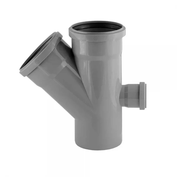 Этот проходной крест предназначен для соединения труб диаметром 110 мм, а также имеет отвод под углом 45 градусов с диаметром 50 мм, что обеспечивает гибкость при проектировании и монтаже канализационной системы. Углы 90 градусов позволяют создавать прямые повороты в системе, а проходная конструкция гарантирует беспрепятственный поток сточных вод, минимизируя риск засоров.