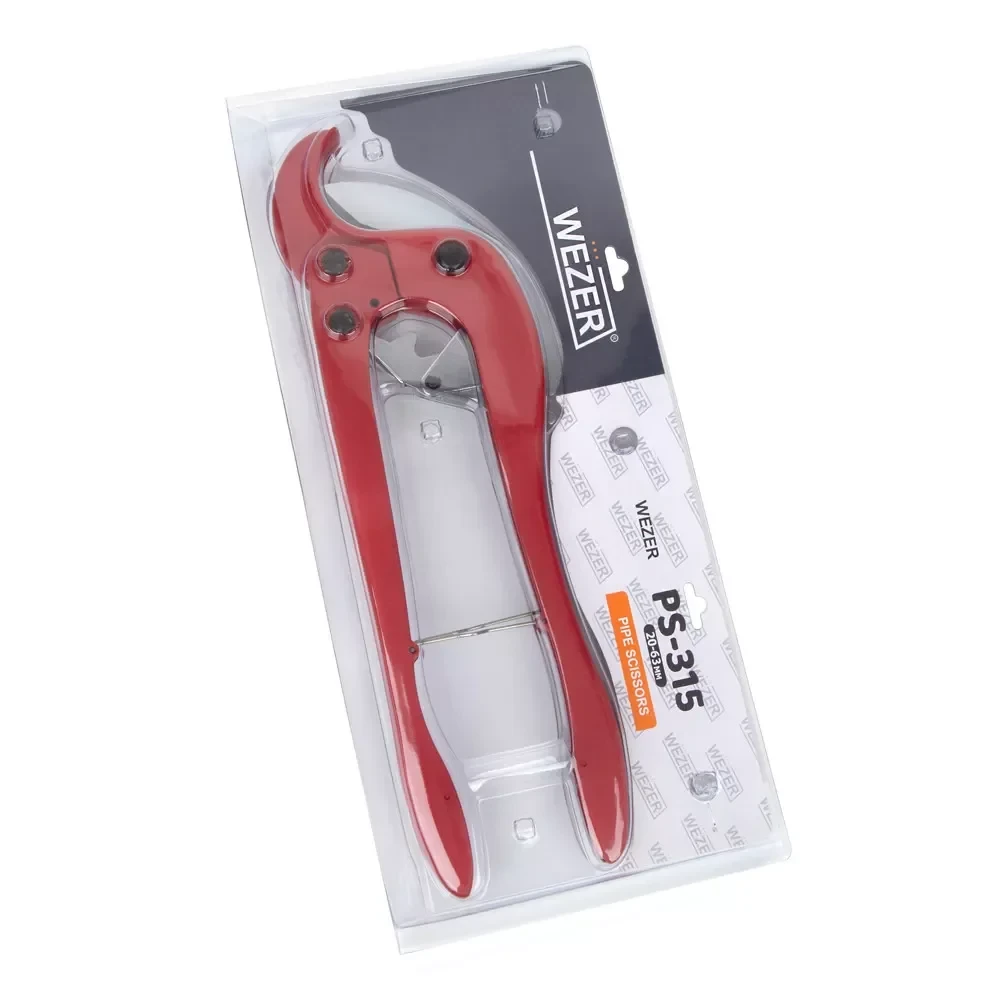 Ножницы для пластиковых труб WEZER CF-315 – это надежный и долговечный инструмент, разработанный для профессионального и домашнего использования. Они обеспечивают чистый и ровный рез пластиковых труб диаметром от 20 до 63 мм, что делает их незаменимыми при монтаже водопроводных и отопительных систем. Бренд WEZER інструмент известен своим качественным инструментом, и эта модель не является исключением.
