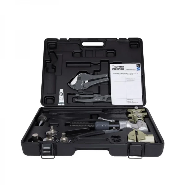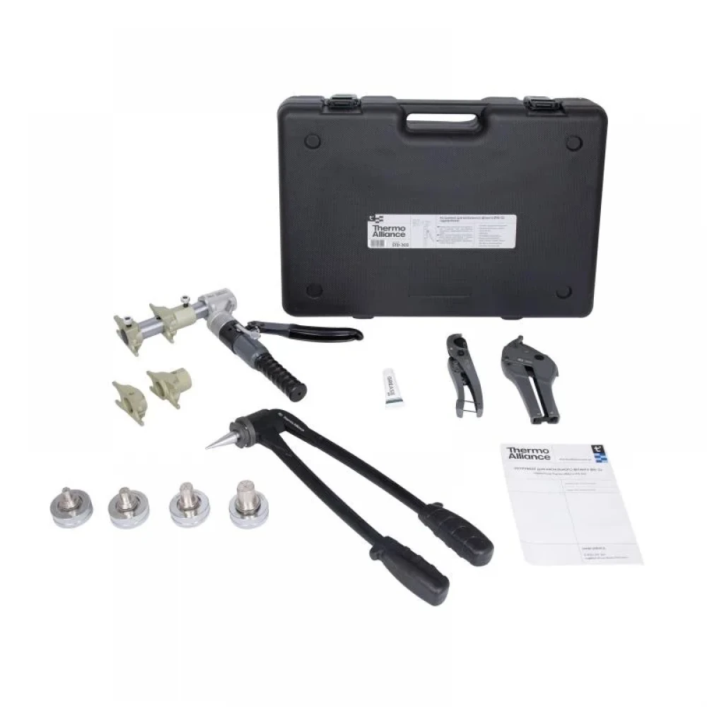Гидравлический инструмент для осевого фитинга Ø 16-32 Thermo Alliance STD-302 предназначен для соединения осевых фитингов с полимерными трубами типа Pex-A, Pex-B, Pex-C, PERT, а также металлополимерными трубами. Для работы необходимо использовать соответствующие расширительные насадки под нужный диаметр трубы. Главное преимущество – ти надежный гидравлический механизм, обеспечивающий точное и герметичное обжатие при каждом нажатии. Комплектация: инструмент с набором сменных губок, расширитель с комплектом насадок, большой и малый труборез. Инструмент универсален и совместим с фитингами ICMA, Rehau, General Fittings, Golan, Heat-Pex, Fado и др.