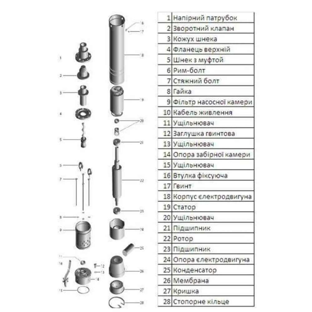 Насос свердловинний шнековий VOLKS pumpe 3,5 QGD 1,8-50-0.75кВт 3,5 дюйма! + Кабель 15м