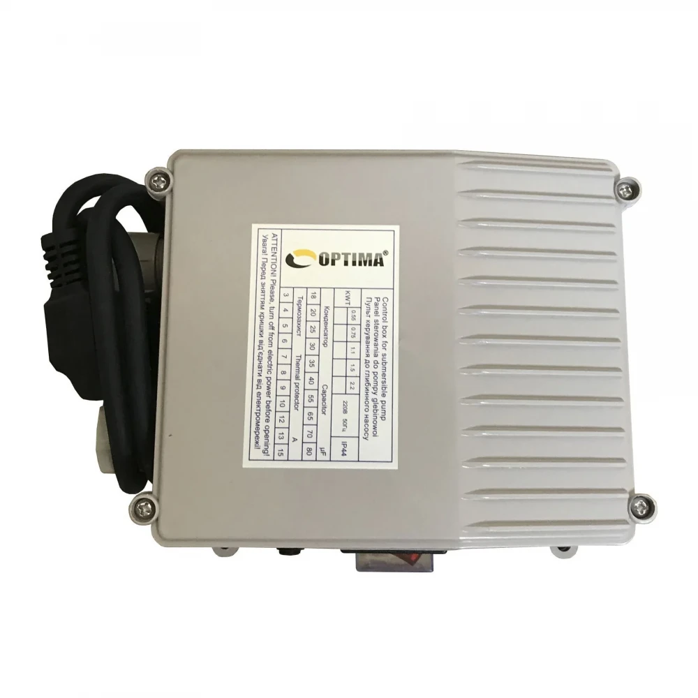 OPTIMA 3SDm1.8 / 39 1.1 кВт 159м NEW оснащений асинхронним однофазними двигуном з коротко замкнутим ротором і «плаваючим» робочим колесом, для реалізації підвищеної стійкості до піску. Насос комплектується вбудованим в пульт теплової захистом, а також конденсаторним блоком. Двигун заповнений спеціальним мінеральним маслом для ефективного охолодження (тепловіддачі в навколишнє середовище), а також для змащення й охолодження підшипників і механічного ущільнення.