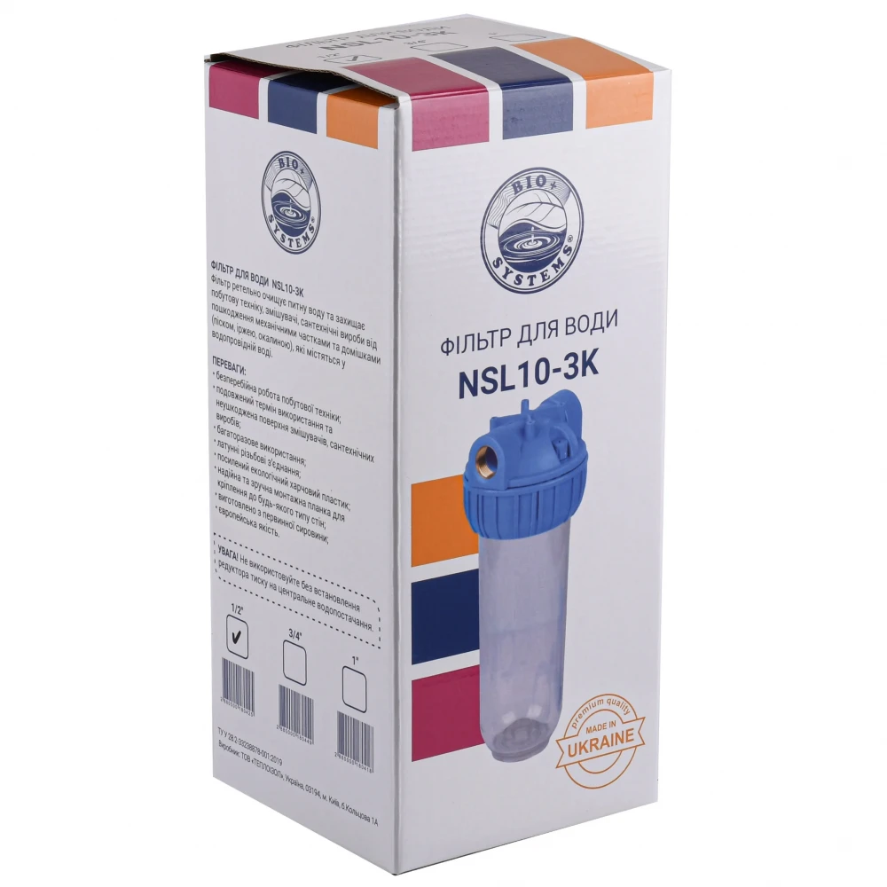 Фільтр-колба 3-х комп. + ключ, планка, БЕЗ картриджа Bio+ systems NSL10-3K, 3/4″
