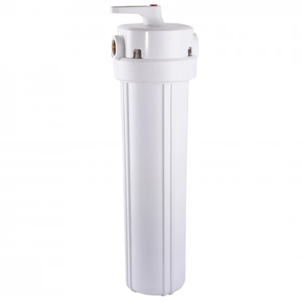Колба оснащена воздушным сбросным клапаном, который необходим для упрощения замены картриджей. Фильтр используется только для холодной воды. Одна большая колба равноценна по расходу воды нескольким фильтрам меньших габаритов.
