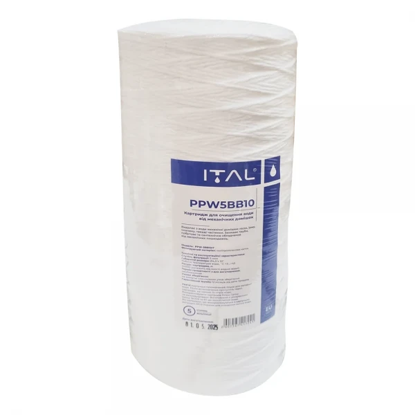 Фильтр-картридж ITAL PPW5BB10IT изготовлен из высококачественного полипропиленового волокна, намотанного ниточным способом. Такая конструкция обеспечивает высокую грязеемкость и эффективное удаление механических загрязнений размером до 5 микрон. Картридж имеет стандартный размер 4.5" x 10", что делает его совместимым с большинством корпусов магистральных фильтров Big Blue 10". Благодаря своей структуре, полипропиленовый картридж обеспечивает равномерную фильтрацию по всей поверхности, предотвращая образование каналов и увеличивая срок службы. Бренд ITAL картридж зарекомендовал себя как производитель надежных и долговечных фильтрующих элементов, что гарантирует стабильную работу и высокое качество очистки воды.
