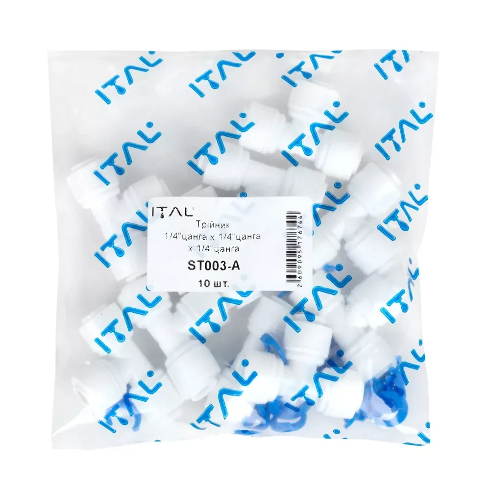 Фитинг тройник ITAL осмосы – это незаменимый элемент для создания надежных и герметичных соединений в системах обратного осмоса. Он предназначен для разветвления трубки диаметром 1/4"Q на три направления, обеспечивая эффективную работу вашей системы водоочистки.