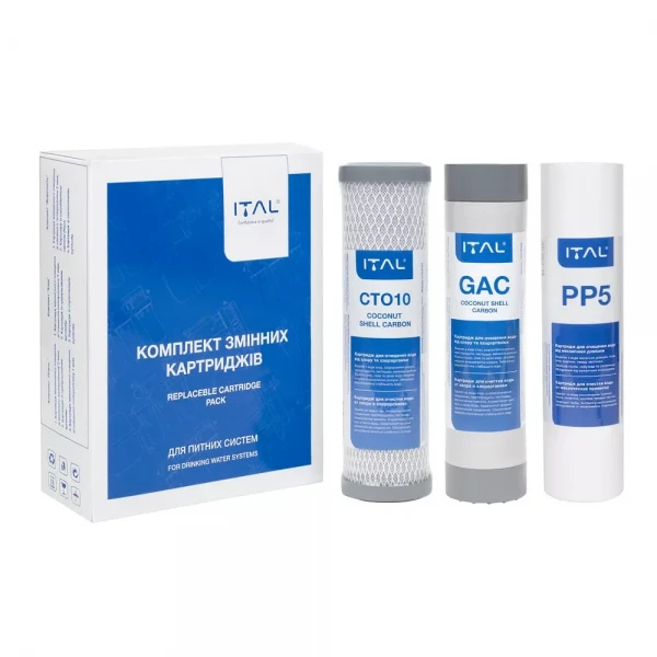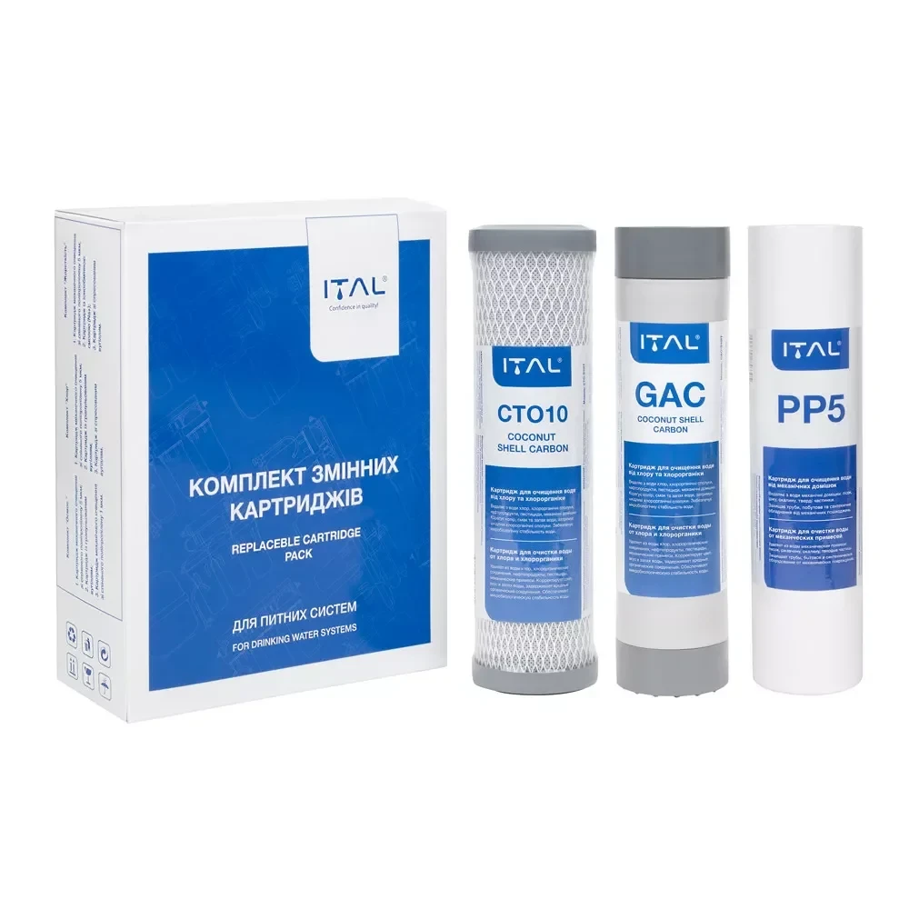 Закажите Комплект картриджей ITAL Хлор 1-2-3 (PP5+CTO10+CTO-S10IT) для фильтра обратного осмоса сейчас и наслаждайтесь чистой и вкусной водой каждый день!