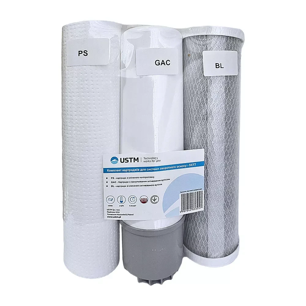 Закажите Комплект картриджей USTM Хлор 1-3 (ППР 5 мкм + активированный уголь + прессованный уголь) сейчас и наслаждайтесь чистой и вкусной водой каждый день!