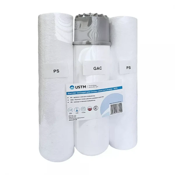 Комплект USTM Осмос 1-3 SET6 состоит из трех картриджей, выполняющих последовательные этапы фильтрации: