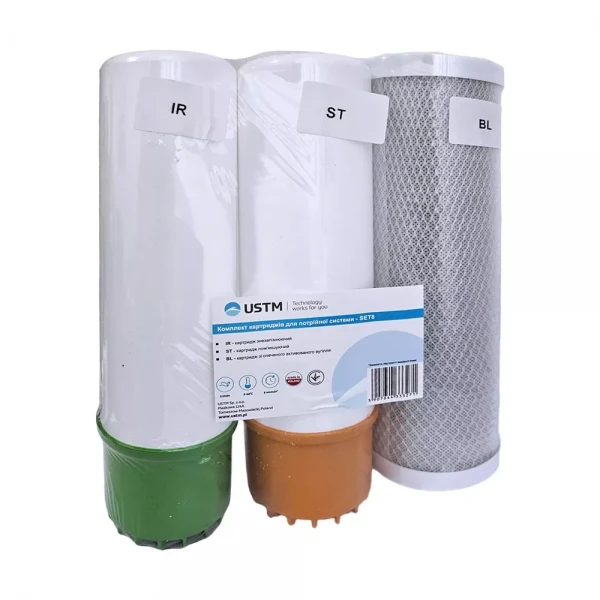 Закажите Комплект картриджей USTM Улучшенный жесткость 1-3 (обезжелезивание + смягчение + спрессованный уголь) (SET8) сейчас и наслаждайтесь чистой и мягкой водой в вашем доме!