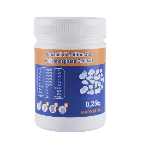 Откладывающийся на механизмах (барабан, нагреватель) камень приводит к поломке оборудования и большему потреблению электроэнергии. Кристаллы полифосфата трансформируют содержащийся в воде фосфат в фосфат кальция, благодаря чему на оборудовании не оседает накипь. Фосфат кальция не усваиваивается организмом человека, поэтому такие картриджи или фильтры нельзя применять для фильтрации питьевой воды, а только для фильтрации холодной воды бытового назначения.