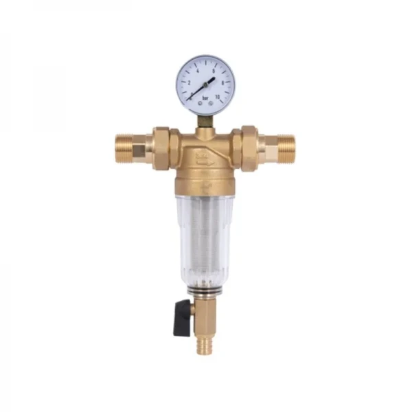- Установите фильтр на водопроводную трубу с помощью резьбовых соединений 3/4".