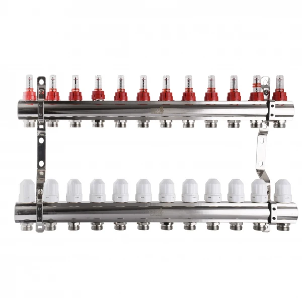 Колектор з вимірювачем витрат, регуляторами та кріпленням ECO001D 1″x12