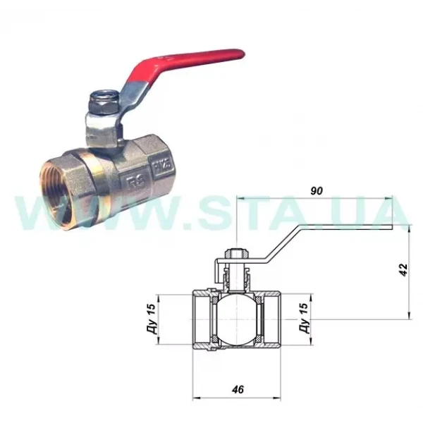Кран шаровой STA 1/2" ВВ никелированный с красной ручкой