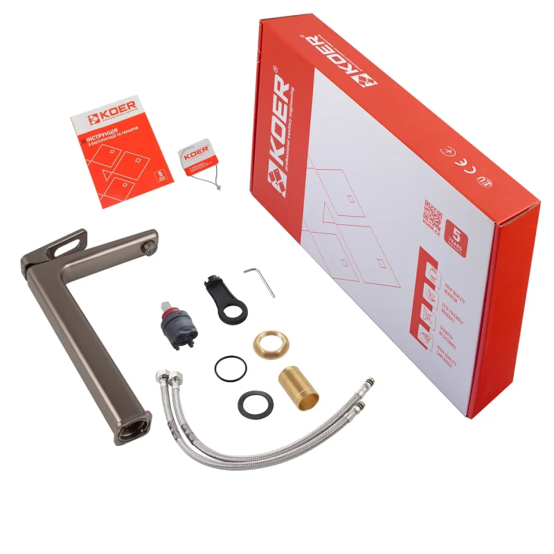 Koer KB-11031-07 – це ідеальний вибір для тих, хто цінує надійність, елегантність та функціональність. Цей змішувач для умивальника високий від бренду KOER поєднує в собі сучасний дизайн та високу якість матеріалів, забезпечуючи довготривале використання та комфорт у вашій ванній кімнаті. Завдяки простоті монтажу, ви зможете встановити його самостійно, без необхідності звертатися до фахівців. Обираючи KOER, ви обираєте перевірену якість та надійну сантехніку для вашого дому.