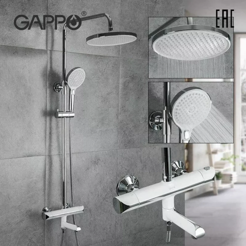 Замовте Душова система з термостатом GAPPO G2403-58 біла/хром з перемикачем на лійку 3 режими зараз та насолоджуйтесь комфортом!