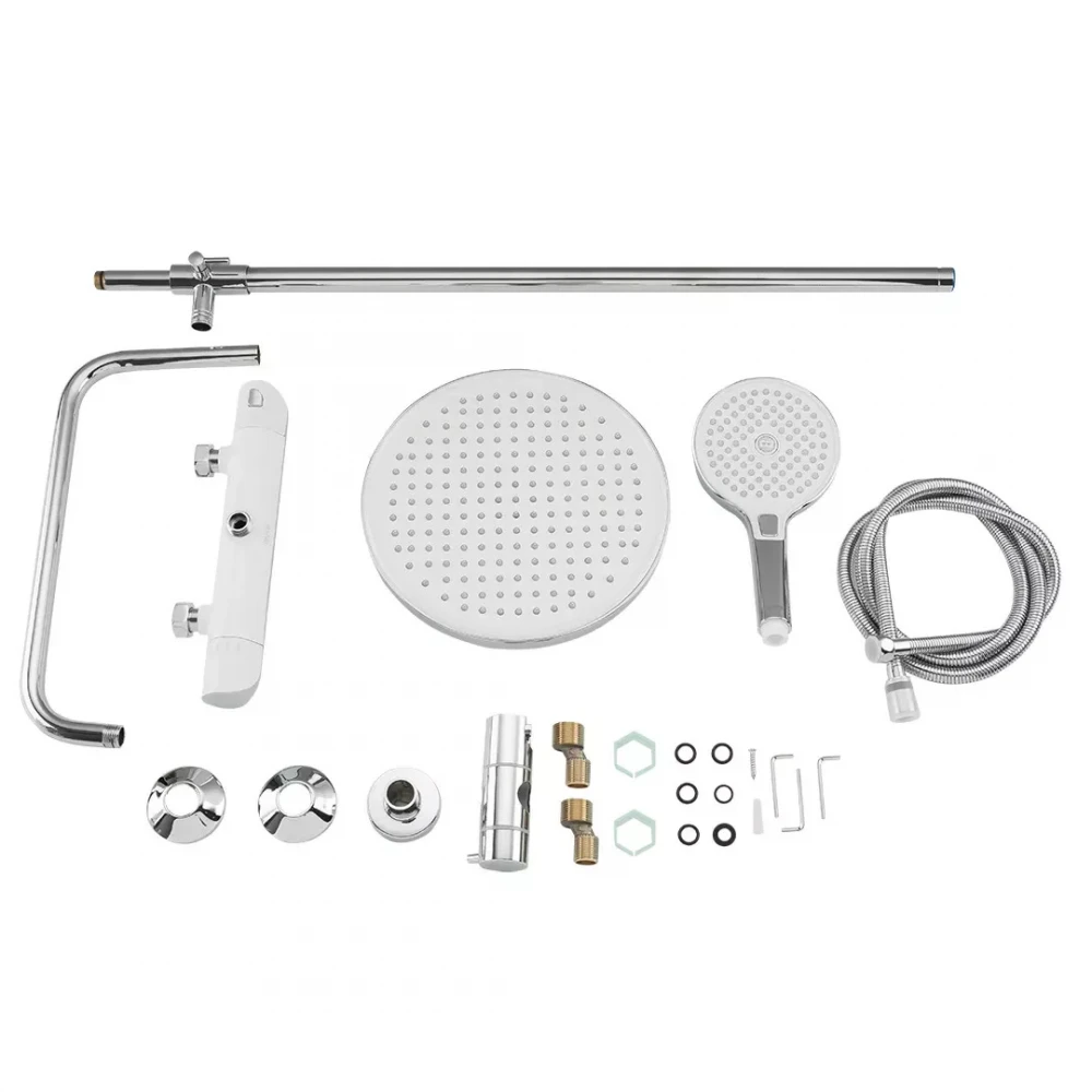Душова система з термостатом GAPPO G2403-58 виконана у стильному біло-хромованому кольорі, що гармонійно впишеться в будь-який сучасний інтер'єр ванної кімнати. Основою конструкції є надійна латунь, що гарантує довговічність та стійкість до корозії. Хромоване покриття не лише додає блиску, але й захищає від механічних пошкоджень та утворення вапняного нальоту. Ключовою особливістю цієї моделі є термостатичний картридж, який забезпечує стабільну температуру води. Перемикач на лійку з трьома режимами дозволяє налаштувати потік води відповідно до ваших потреб, створюючи ідеальний досвід прийняття душу. Бренд GAPPO відомий своєю якісною сантехнікою та використанням сучасних технологій, що робить душові системи GAPPO надійним вибором для вашого дому.