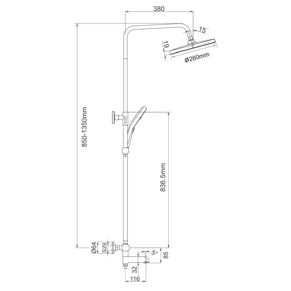 - Монтаж: Закріпіть душову стійку на стіні за допомогою кріплень, що входять до комплекту. Переконайтеся, що стійка встановлена рівно.