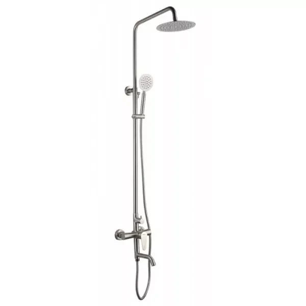 Душова система F2448 виготовлена з високоякісної нержавіючої сталі з сатиновим покриттям, що гарантує її довговічність та стійкість до корозії. Діаметр лійки Ø35 мм забезпечує оптимальний потік води, а три режими дозволяють налаштувати душ під ваші особисті вподобання. Бренд РОЗПРОДАЖ відомий своїм прагненням до поєднання доступної ціни та високої якості, що робить цю душову систему чудовим вибором для будь-якого бюджету. Сатинове покриття не тільки виглядає елегантно, але й легко очищається від вапняного нальоту та інших забруднень, зберігаючи свій первісний вигляд протягом тривалого часу.