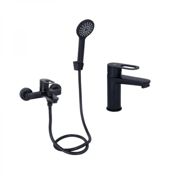 Комплект змішувачів Lidz Latwa Black: Змішувач для раковини LDLAT001BLA45418 + Змішувач для ванни LDLAT006BLA45419: Єдиний стиль для вашої ванної кімнати