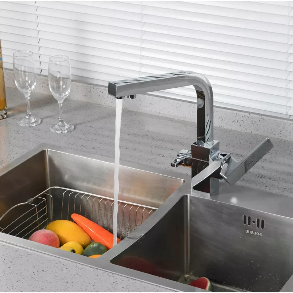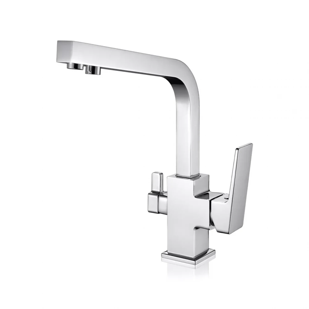 Змішувач для кухні FAOP A4309 відрізняється від аналогів наявністю вбудованої функції підключення фільтра для питної води. Це дозволяє заощадити місце на кухні та забезпечити постійний доступ до чистої води. Хромоване покриття гарантує довговічність та привабливий зовнішній вигляд, а проста установка робить його доступним для самостійного монтажу.