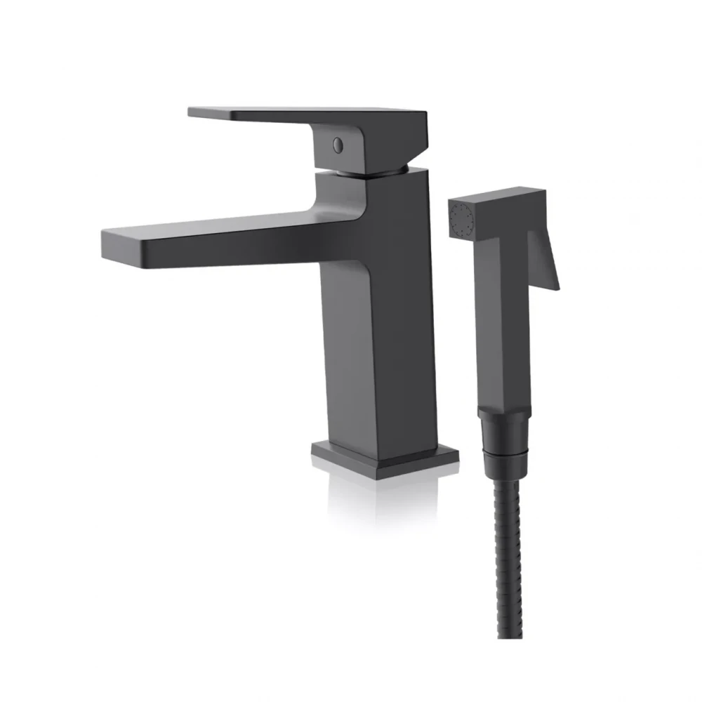 Змішувач для раковини з гігієнічним душем FAOP A1009-16 чорний - це елегантне поєднання стилю та функціональності, створене для сучасних ванних кімнат. Цей змішувач не тільки забезпечує комфортне миття рук, але й пропонує зручний гігієнічний душ для додаткової гігієни.