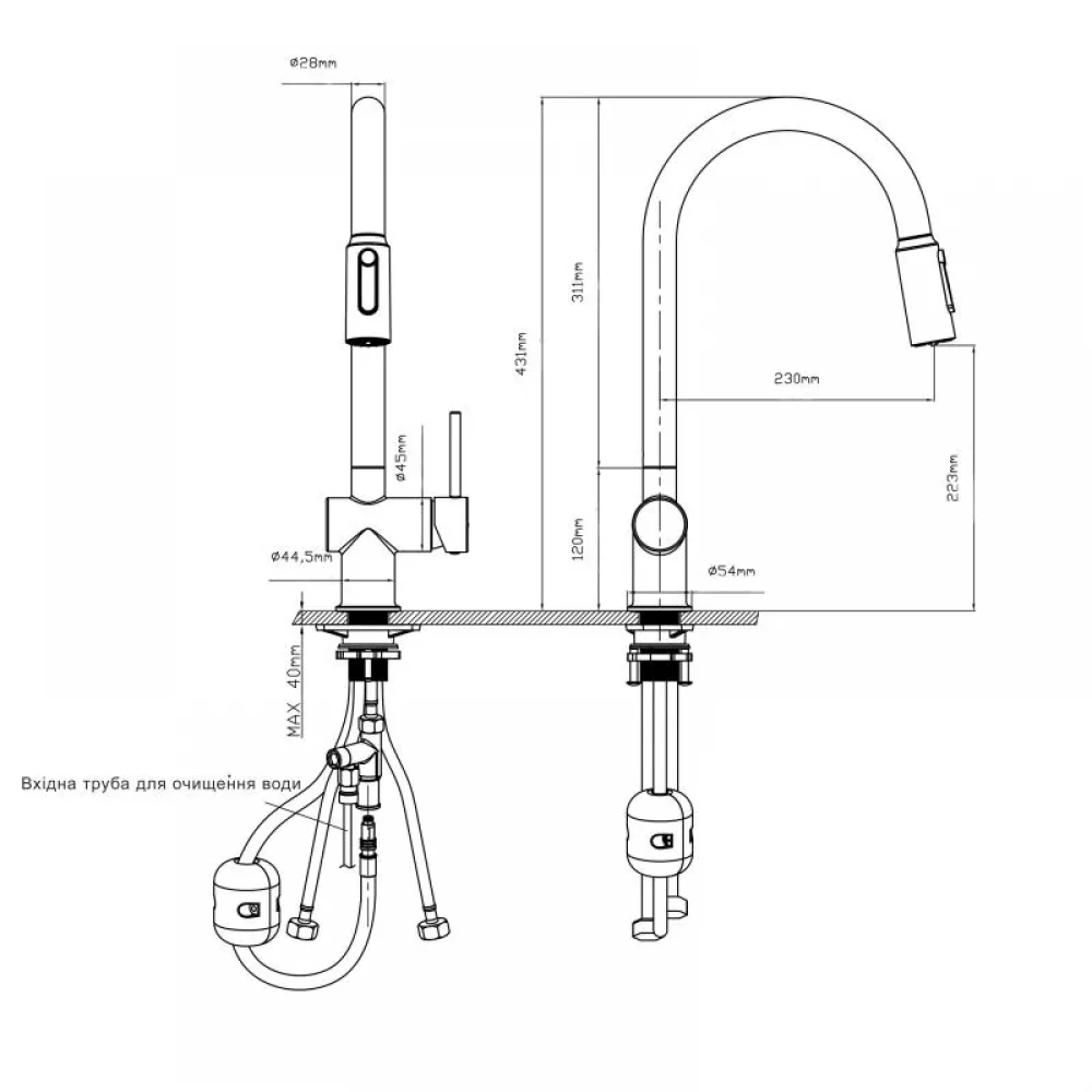 - Висувний вилив для максимальної зручності миття.