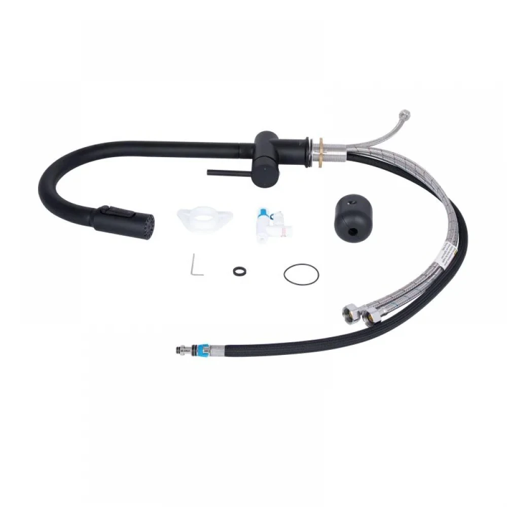 Замовте Змішувач для кухні Qtap Rozcesti з висувним виливом з підключенням для питної води QTROZ366BLM45940 Black Matt зараз та насолоджуйтесь комфортом та чистотою води на вашій кухні!